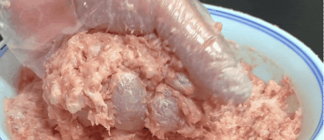Remove the blade and mix the meat thoroughly with chopsticks or a spoon. Transfer the mixture directly into a large bowl. Set aside once fully combined.