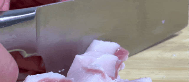 First, prepare a piece of pork shoulder. Separate the lean and fatty parts, then cut them into pieces. Remove the pork skin and discard it. Then slice the fat into thick pieces, roughly the same size as the lean meat pieces. Cut the lean meat into similar-sized pieces.
