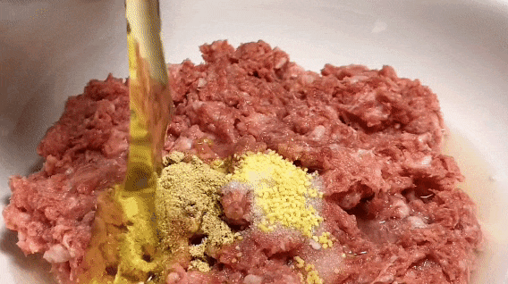 How to make pork meatballs? I recommend adding potato starch in batches. For about 500 grams of minced meat today, roughly 20 grams of starch should suffice. Keep stirring in one direction while gently slapping the mixture. Repeat this process for about 3 to 4 minutes. Finally, test the mixture by gently squeezing a small amount between your fingers. If it forms a round ball, the mixture is ready.